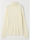ノーカラーのスッキリとしたラインなので、今の季節は薄手のタートルニットと合わせるのがおススメ。