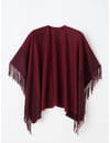 シンプルなベージュ系のコーディネートなので、ボルドー色のポンチョを差し色で合わせると華やかになります。