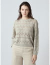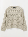 コンパクトな丈感のニットは幾何学模様をアレンジした透かし柄を全面で表現しています。