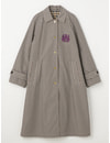 ポリエステルのミニクラブチェック×コットンのクラブチェックを使用したリバーシブルコート。Aquascutum175周年のアニバーサリーカラーである、イングリッシュパープルでクレスト刺繡を施しています。インナーには肩ボタンのケーブルニット。チインナーには主張しすぎない細かいケーブル柄を選びました。コートを脱いだ時にはニットの肩ボタンがアクセントに。ボトムのパンツはアイボリーで春らしく、全体に軽やかな雰囲気にコーディネートしました。