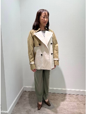 肩のロゴ入りボタンと、袖の細かなピンタックがデザインポイント。凝ったディティールとシルエット、ニュアンスカラーで、秋口に一枚でさらりと着ても着映えします。