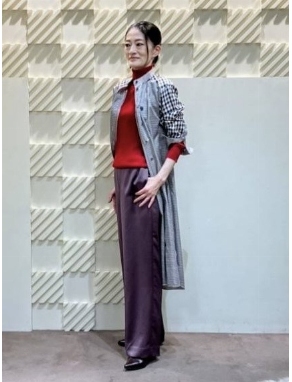 1枚でドレスとして着ていただいても良いですが、程よいハリ感があるので、ワイドパンツと合わせてコート風に羽織るのがおススメ!