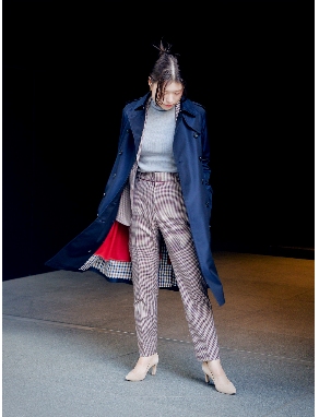 テーパードパンツはセンタープレスできちんと見えしつつ、後ろベルトにゴムを入れているためストレスフリーな着心地。