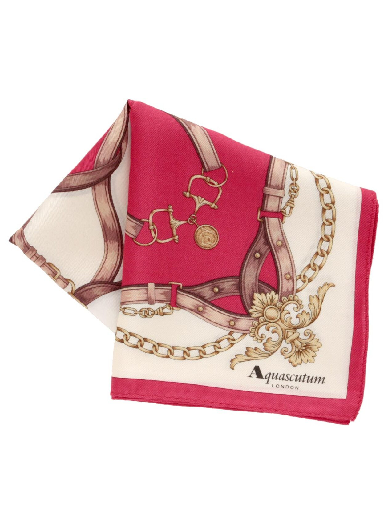 人気のベルト柄にメタルモチーフを組み合わせ、高級感のある一枚に仕上げました。綿シルクの大判サイズのハンカチです。スカーフの代わりに首に巻いても洗濯ができるので、清潔にご使用になれます。