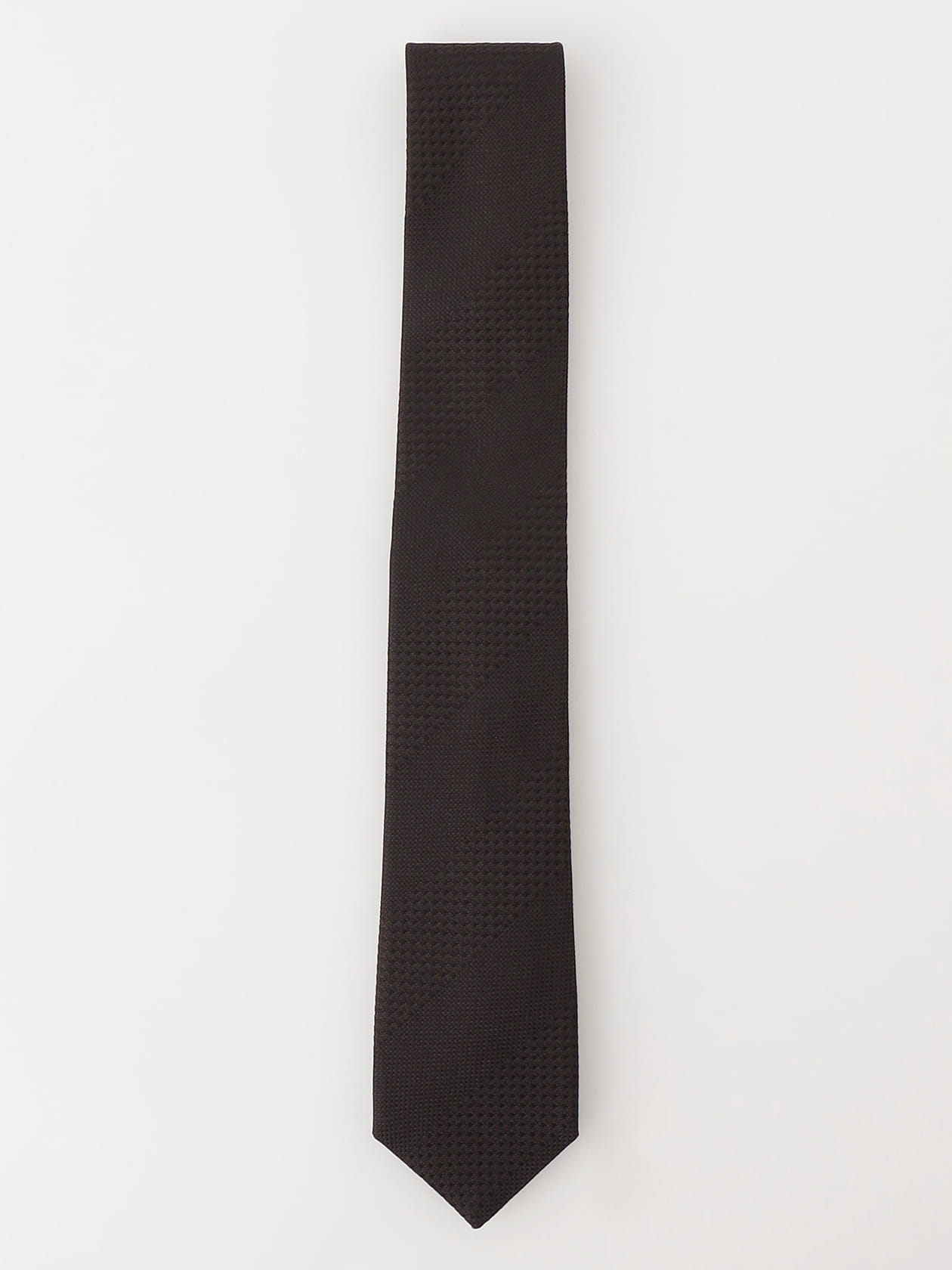 ソリッドなブラウンが、上品な三角ゾーンを演出してくれるネクタイです。 ネイビー、レッドに続いて、ネクタイの定番色と言えるブラウンを光沢感たっぷりに仕上げた一本。傍目には無地のように見えますが、シャドーでレジメンタルを表現した、こだわりを感じるアクセサリーズに仕上がっています。 手に取りやすい一本でありながら、ブラウンに手を出せていないという男性も多いので、ギフトとしても人気が高いカラーリングです。