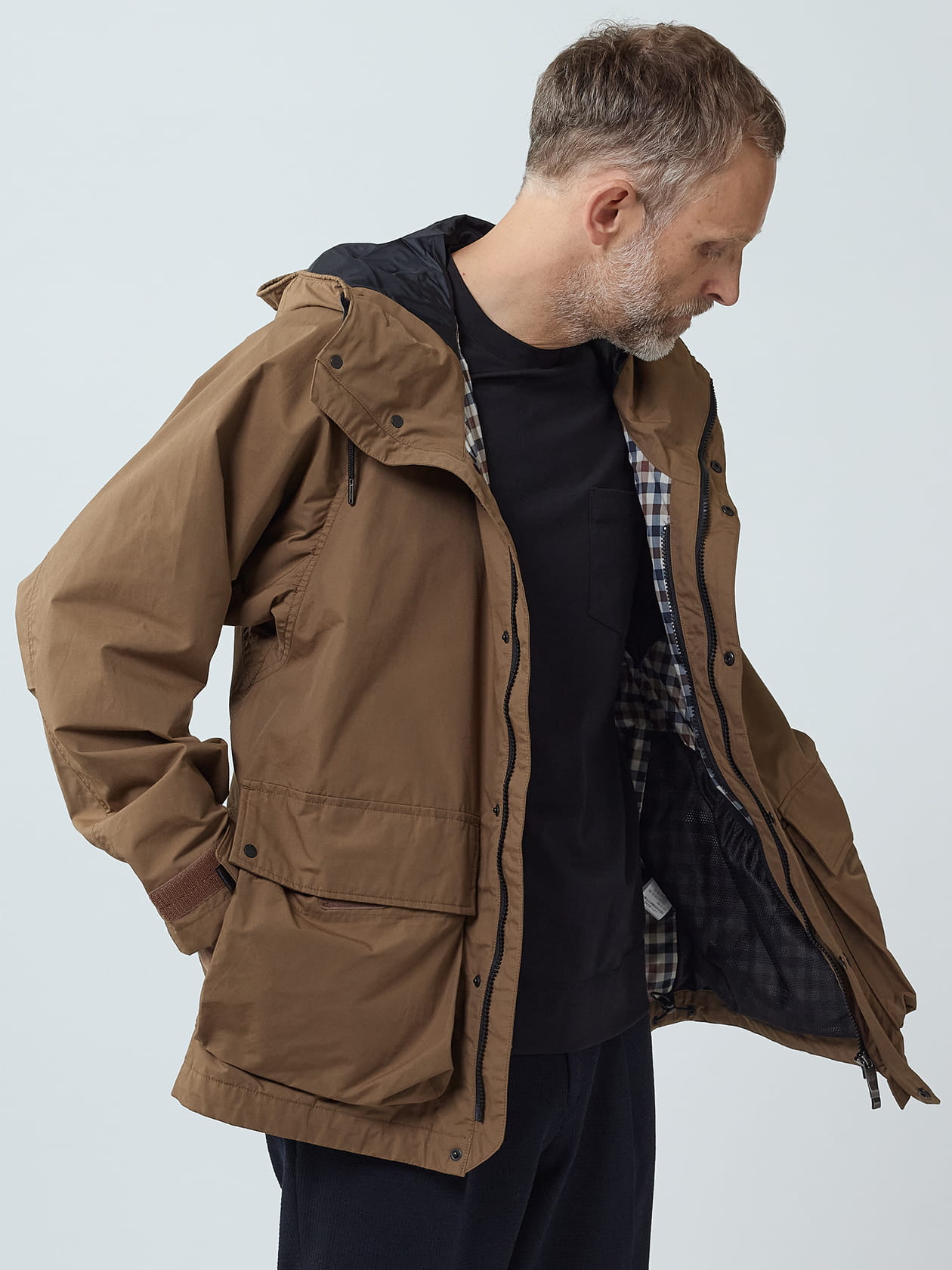NANGAの定番マウンテンパーカーをベースに、大小さまざまな多機能ポケットをバランスよく配置し、水筒や小物などもスムーズに出し入れ可能。ハンドウォーマーポケットも備え、実用性の高さが魅力の一着です。
