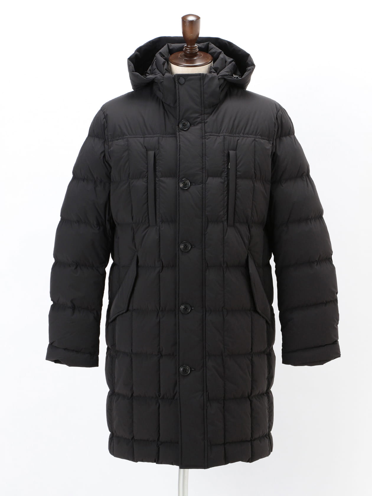 品格漂うスクエアキルトが特徴のフーデッドロンググースダウンコート。 近年、コスト面の理由から中綿やダックダウンが主流となりつつあるダウン業界ですが、軽さと保温性に優れたグースダウンにこだわった一着です。 ダウンとフェザーの割合も95%:5%と高品質なものをチョイスし、それを撥水加工を施した表生地で包むことで雨の日でも着られる高品質ダウンに仕上がりました。 機能面だけでなく、マットな色表現が洒落感も漂わせる、ファッションブランドならではの一枚です。