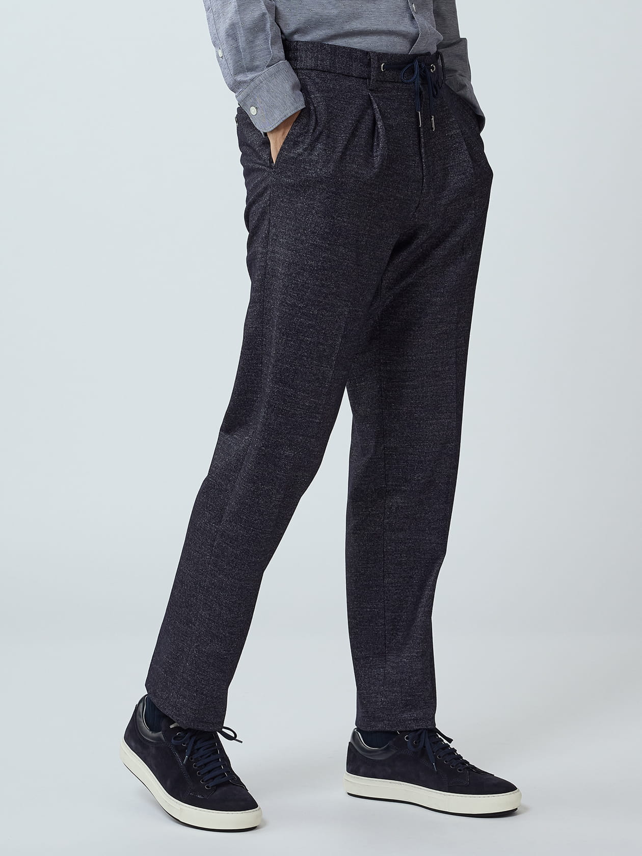 定番としての地位を獲得しつつあるニットデニムのセットアップ。こちらはトラウザーズの紹介ページです。