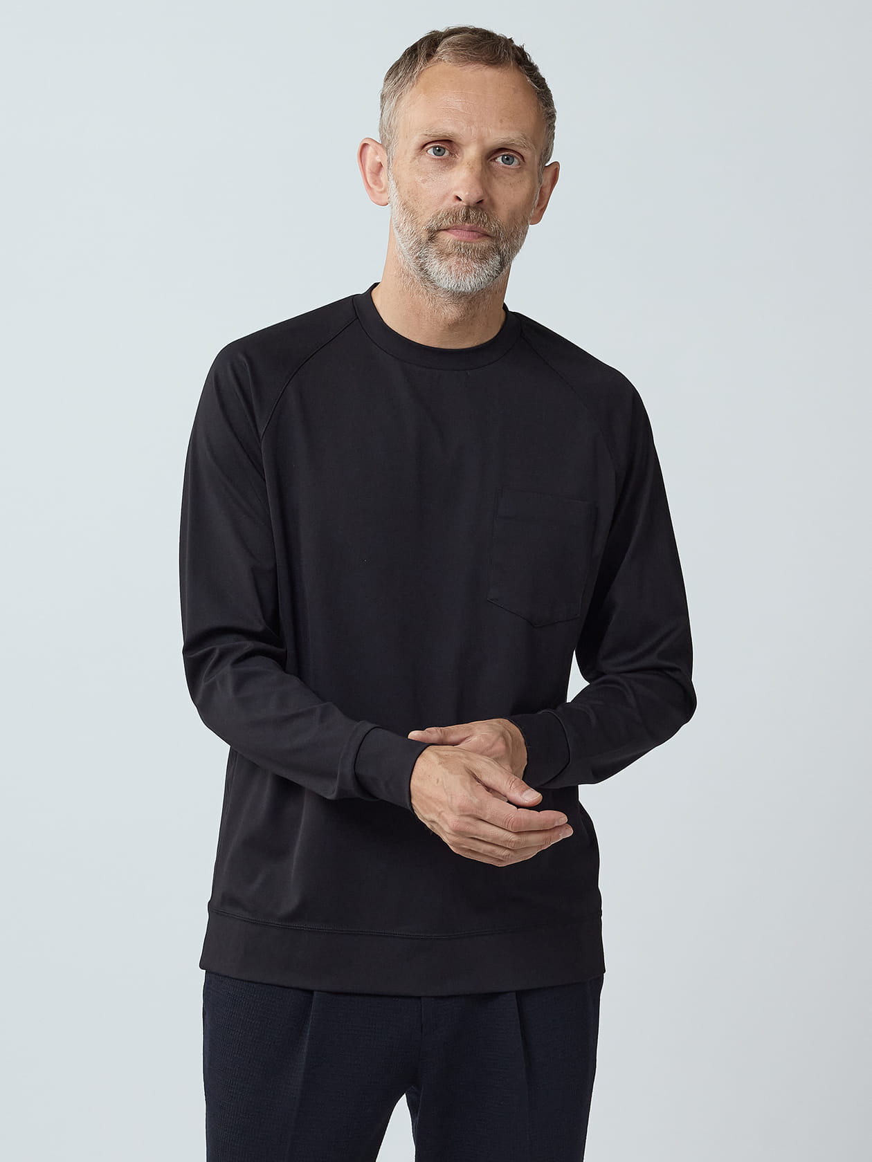肌に触れる洋服の裏面にも、生地の表が来る「スムース編み」という編み方で仕上げたハイゲージカットソー。 今季始動の「TEC.3 Trip」ラインが表現するモノトーンコーディネートに欠かせない一枚で、秋口には主役級の一枚として、冬には名脇役のインナーとして重宝するベーシックアイテムです。 キレイな目面とハリ感の融合した素材でシワにもなりにくいため、旅行時に持ち運ぶのに適した一着。 モデル H:185㎝ 着用サイズ:L