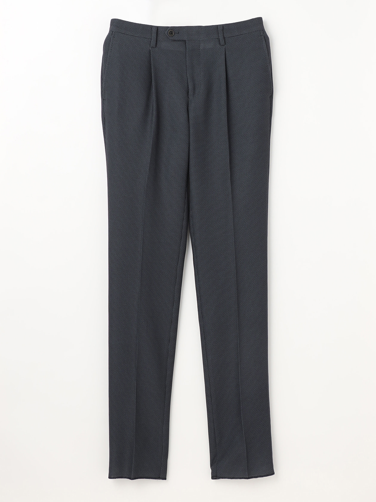 ご家庭洗濯可能な手軽さが魅力の「TEC.3」シリーズから、特殊な生地を用いたネイビーとライトグレーの大本命セットアップが登場です。 特殊な織機を用いて経糸をねじり合わせながら緯糸を通していく「カラミ織り」は、古くから日本にも根付いてきた織物で、夏の着物やお坊さんの法衣などに用いられてきた清涼生地です。 その魅力は何と言っても通気性。光に晒すと向こう側が透けて見えるほどの軽量さで、必然的に空気の通りもよく、夏時期でもジャケットを羽織らなければいけない方にはぴったりの一着に仕上がりました。 ジャケットを仕立てるにあたり、通気性は嬉しいものの透け感は少し抑える必要があったので、使い勝手のいい小ぶりな千鳥格子をプリント。ネイビーとライトグレーという定番色を採用する事で主役級のセットアップとなりました。 見た目には英国スーツさながらの堅実さを持ちながら、羽織るとちょっと驚くぐらいの軽さであるカラミ織りジャケット。高温多湿な日本の夏に心強い、カラミ織り特有のジャリっとした質感と肌離れの良さを是非お手元に。