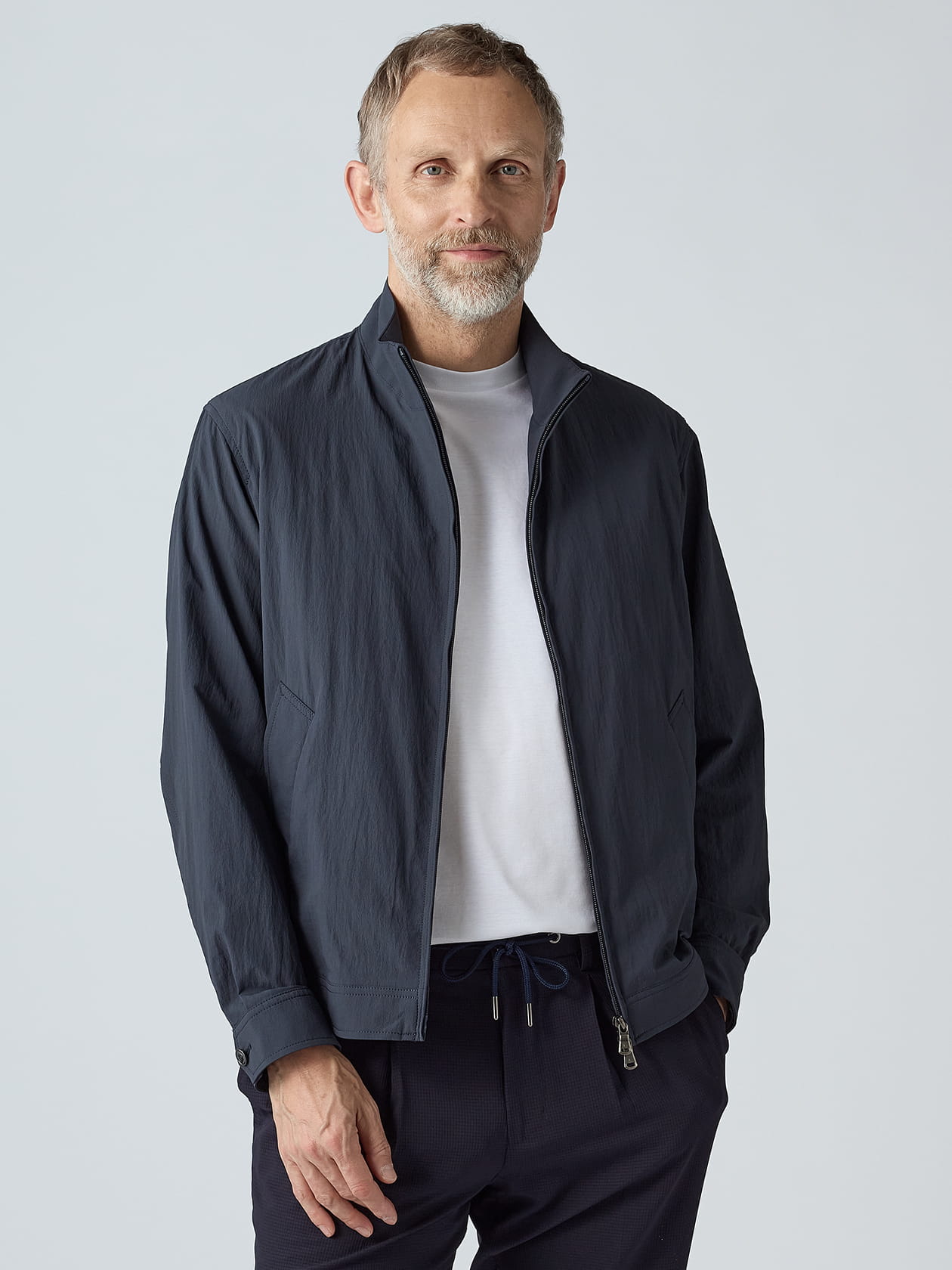 アクアスキュータムのコンフォートラインの中でも、出張や旅行を意識した新シリーズ「TEC.3:trip」のラインナップをご紹介。タイムレスなハリントンジャケットを軽量・機能的に仕上げた春夏ブルゾンがリリースです。 メッシュ調織りの涼しげなナイロン生地で伸びやか且つ軽量なブルゾンを製作。TEC.3ライン特有のご自宅洗濯可能なウォッシャブル仕様はそのままに、天然繊維に見紛うほどのナチュラルな発色を追求しました。 Tripたる理由は背面裏地と同素材のクラブチェックメッシュバッグが付属している点。旅行時にはコンパクトに折りたたんで持ち運べるだけでなく、洗濯ネットとしてそのまま洗濯機に入れられる優れものです。 ジャケット型ではなくブルゾン型でのご提案なので、ビジネスシーンに限らずプライベートなご旅行にもうってつけな1着となりました。