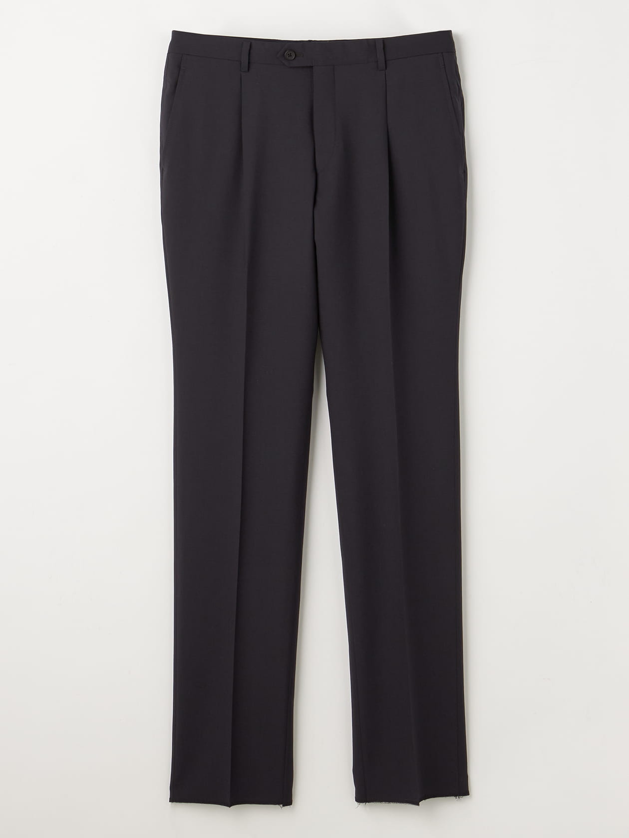 国内尾州産のスーパー140's原料を使った、英国らしい鉄紺が魅力のスラックスです。
