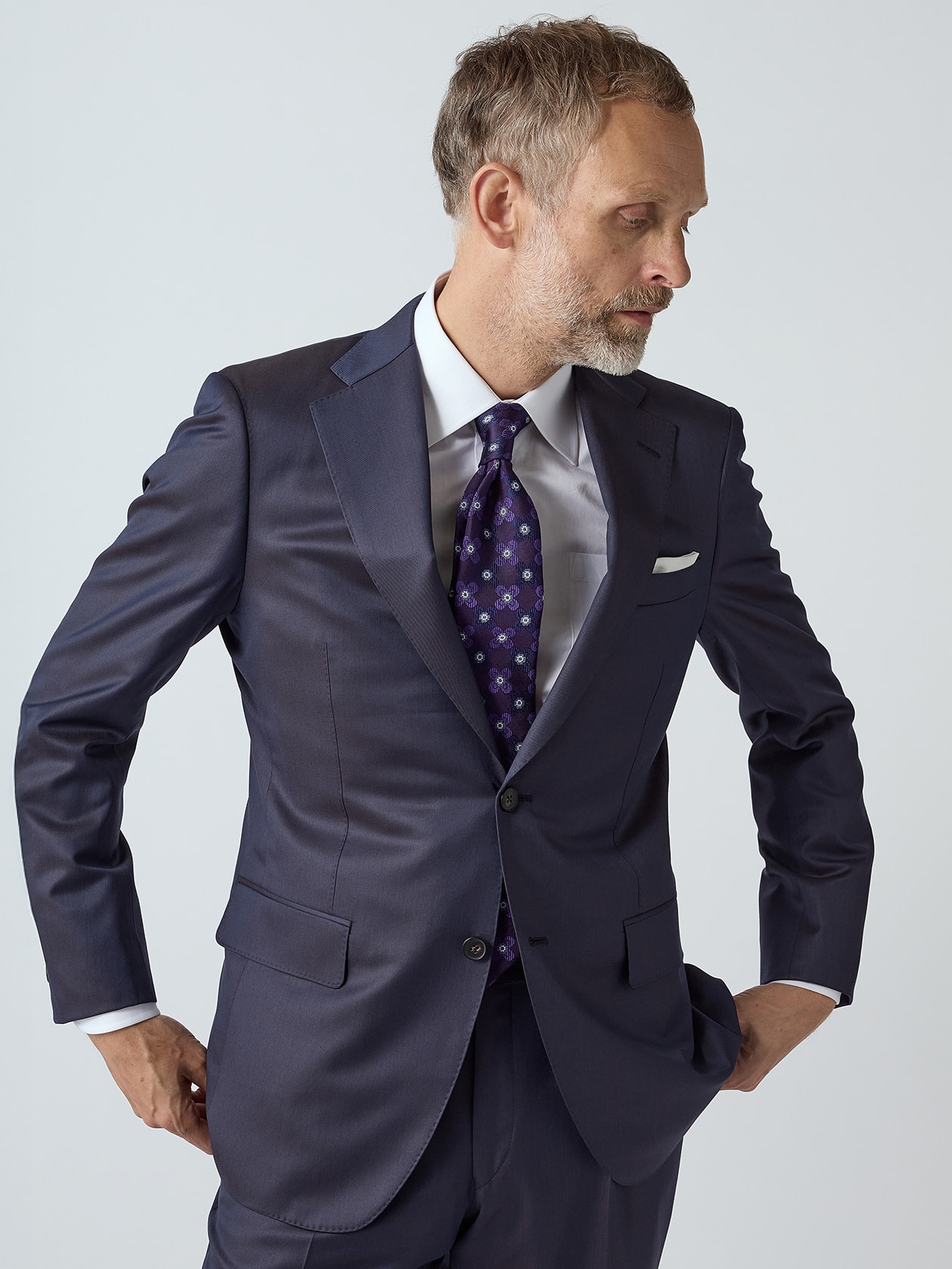 2026年春夏のシーズンテーマ「キューガーデン」を如実に体現したネクタイをご紹介です。 フラワー柄の印象的なモチーフを、ラベンダーパープルとデイジーブルーの2色でご提案。メリハリある色遣いに遊び心を感じる、スーツスタイルのVゾーンを華やかに彩る一本です。 あくまで同系色の中で柄を作っているので、目を惹くネクタイでありながら悪目立ちはしないバランス感覚に優れたネクタイ。 レジメンタルや無地といった定番どころとは違った魅力のあるシーズンモチーフは、プレゼントにもおすすめな柄の一つです。
