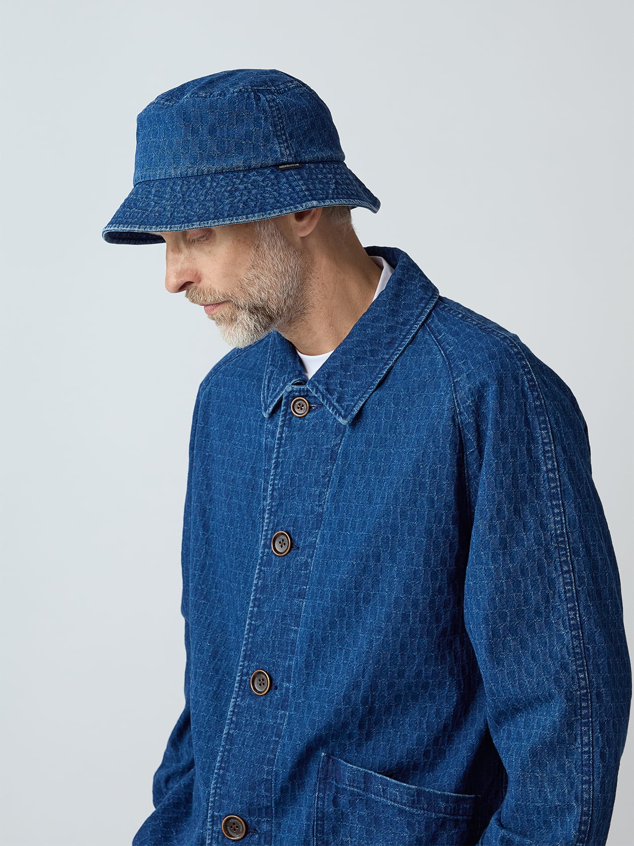近年ハイブランドでも再注目されているデニム素材。もともとは労働着の素材として普及した生地ですが、ファッションとして定着すると爆発的な人気を得て、ここ数年はハイブランドのランウェイでも登場するようになりました。 そんなデニム生地にジャガード織でクラブチェック柄を表現した、クラブチェック誕生50周年記念を祝うアクセサリーズです。 太番手のデニム素材にジャガード織を施すのは非常に難しく、これができる織機を持つのは国内でも数社ほど。それもゆっくりと織っていく必要があるので時間と手間がかかるプレミアムな生地を採用しています。 同素材でアウター/トートバック/ハット/巾着バックも展開しており、デニムの味わいをいろいろなアイテムで感じられるシリーズとなりました。