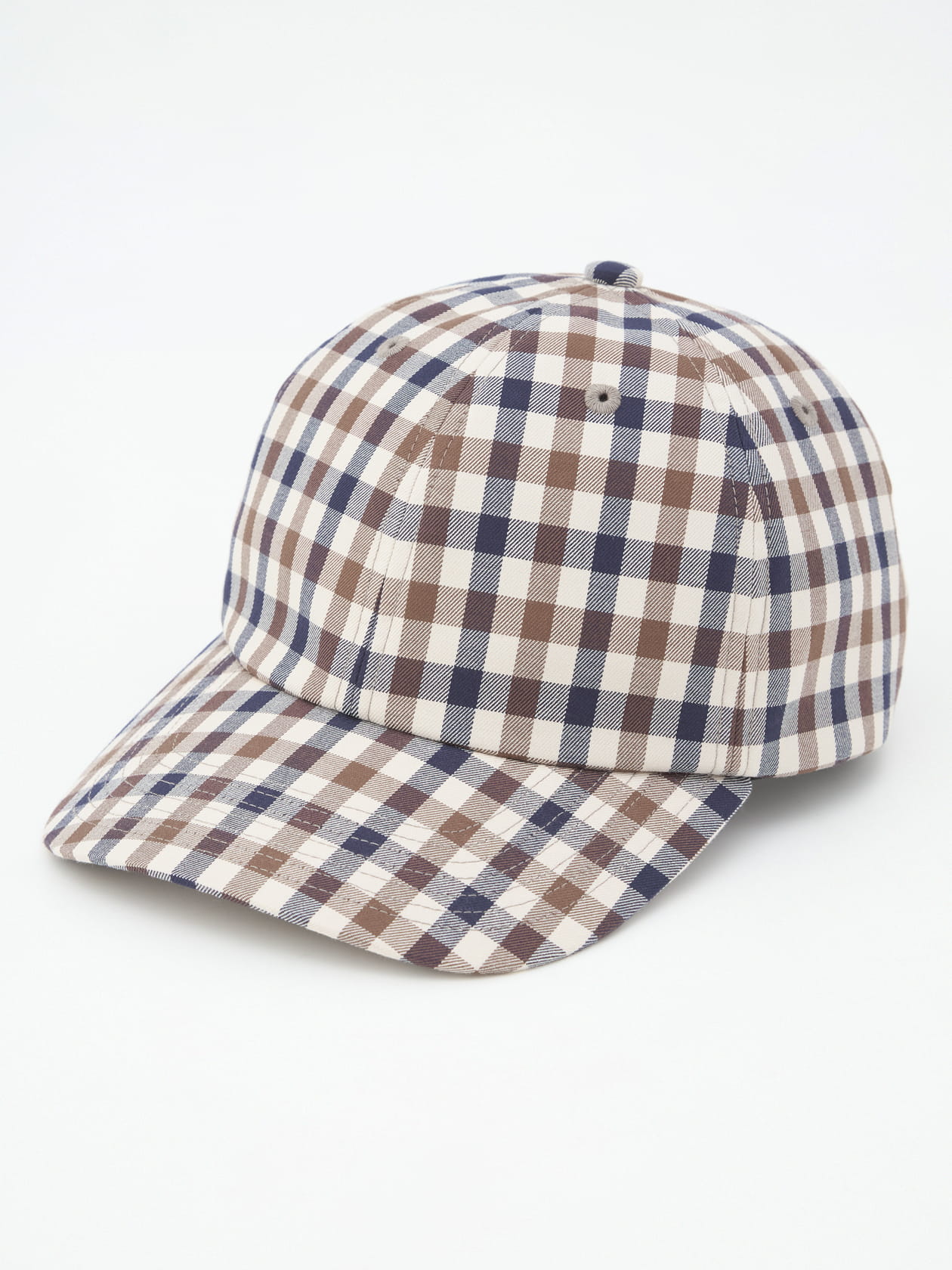 ブランド定番のクラブチェック柄を採用したヘッドウェアをご紹介。 つばが緩やかに弧を描くタイプのキャップは「カーブバイザー」と呼ばれ、つばが平らな「フラットバイザー」と比べると、伝統的でスポーティな印象のアイテムになります。 近年はストリートファッションの台頭でフラットタイプのキャップが世に溢れるようになりましたが、アクアスキュータムのように、英国のトラディショナルウェアに範をとったアイテムと組み合わせるのであれば、おすすめはカーブタイプのキャップです。 そんな伝統的な形状を持つキャップにクラブチェック柄を落とし込んだこちらの一品は、普段のスタイルに一つ添えるだけでグッとこだわりのコーディネート感を演出できる、印象的なアイテムに仕上がっています。