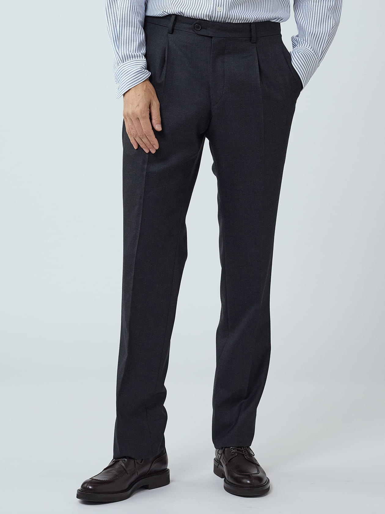 ブランド定番提案のツイルウールのトラウザーズ。クリアー仕上げで秋口から春先まで着用できる息の長さが魅力。 糸にするより前の段階で染色をするトップ染めという手法で表現されたグレーが、高級感がありながらも主張しすぎない、まさに名脇役な一本。 国内尾州産のウールを用いた品質と、しっかりとした打ち込みで表現された英国らしさがブランドらしい。 モデル H:185㎝ 着用サイズ:82 ・画像はサンプルのため、実際の商品と若干異なる場合があります ・照明の関係により、実際よりも色味が違って見える場合があります またご利用の環境により、若干製品と画像のカラーが異なる場合もございます ・商品の色味は、商品アップ画像をご参照ください