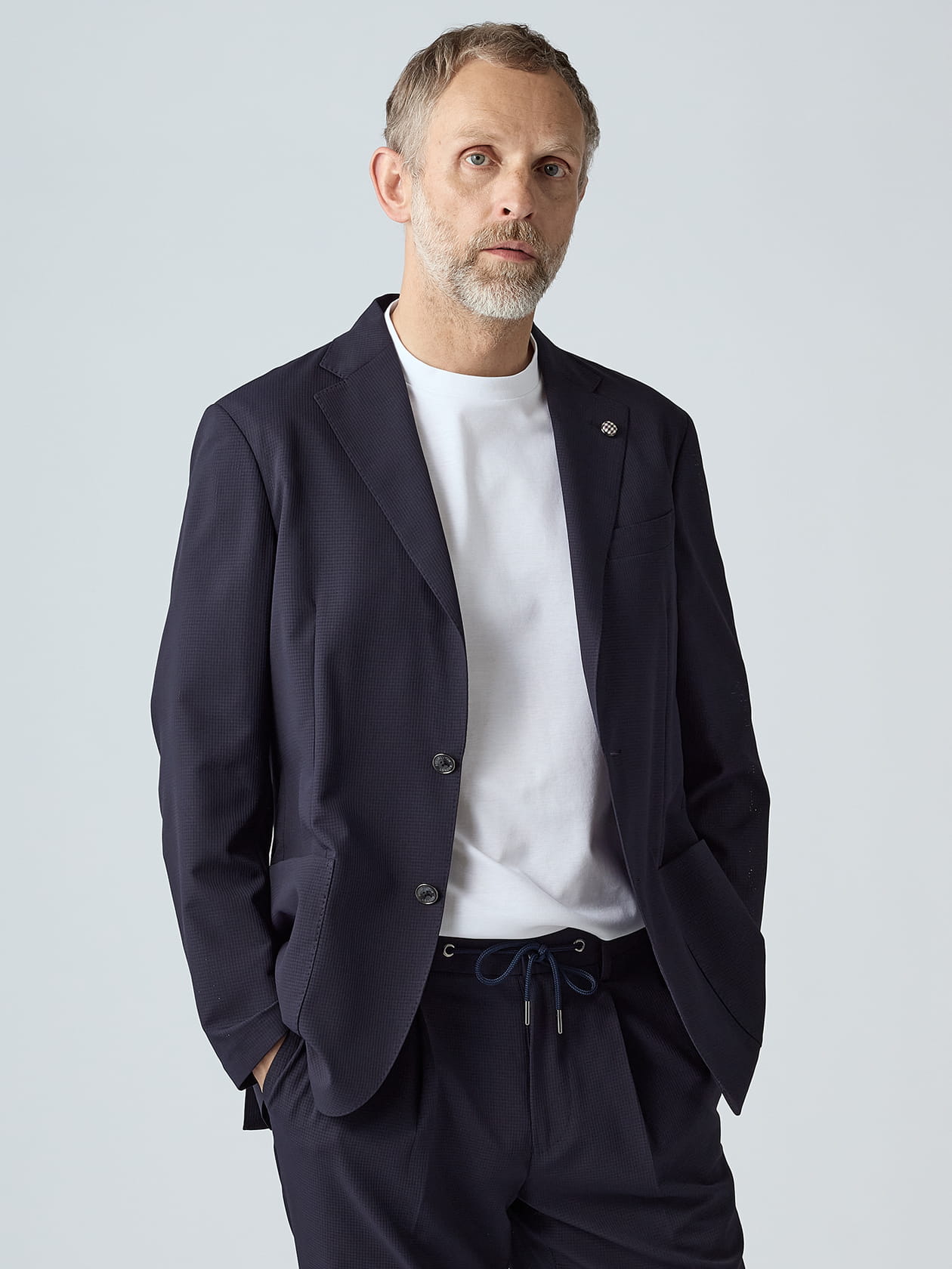 ご家庭洗濯可能な手軽さや、快適な着心地などの魅力で人気の「TEC.3」シリーズから、2026年のラインナップの中で最軽量となるジャケットが登場です。 非常に薄いポリエステル生地を2重織りにすることで強度を上げ、さらにパンチング加工で軽量さをも両立したハイテク生地を採用。表面のドット調組織により肌離れが良く、清涼感に特化した盛夏用ジャケットを仕上げました。 盛夏用のジャケットであってもアクアスキュータムは英国ブランド。技術のあるテーラード工場での縫製にこだわり、他ブランドの盛夏用カジュアルセットアップとは一線を画すグレード感が魅力です。 非常に小さな通気孔でリップ(裂け)ストップ柄が表現され、小さくたたんでの持ち運びや、急な雨にも対応できる撥水性も備わったマルチな一着です。