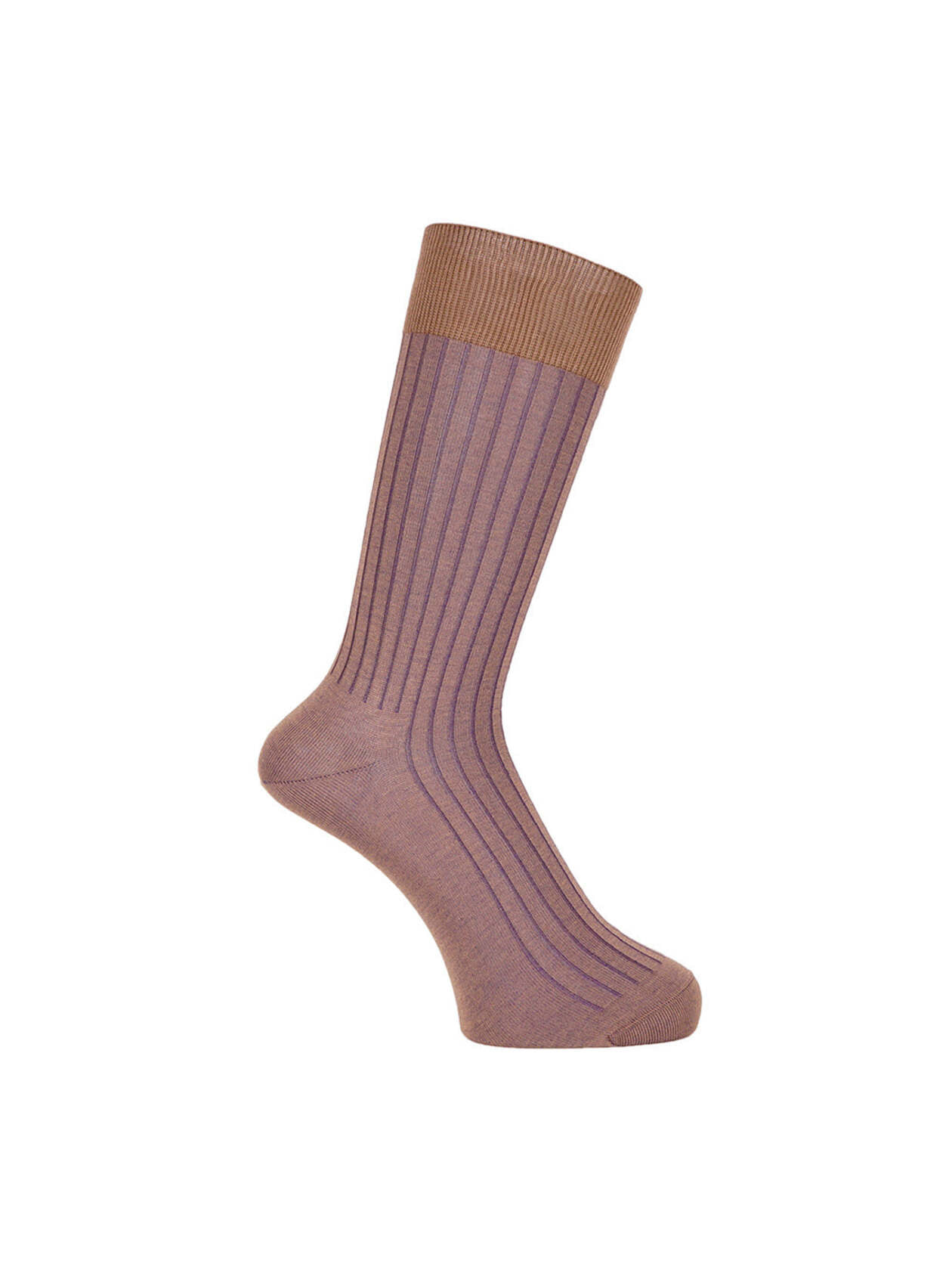 リブの凹凸部で色が違うシャドーリブソックス。光沢のあるガスシルケット糸を使用しているので上品な見た目の商品です。