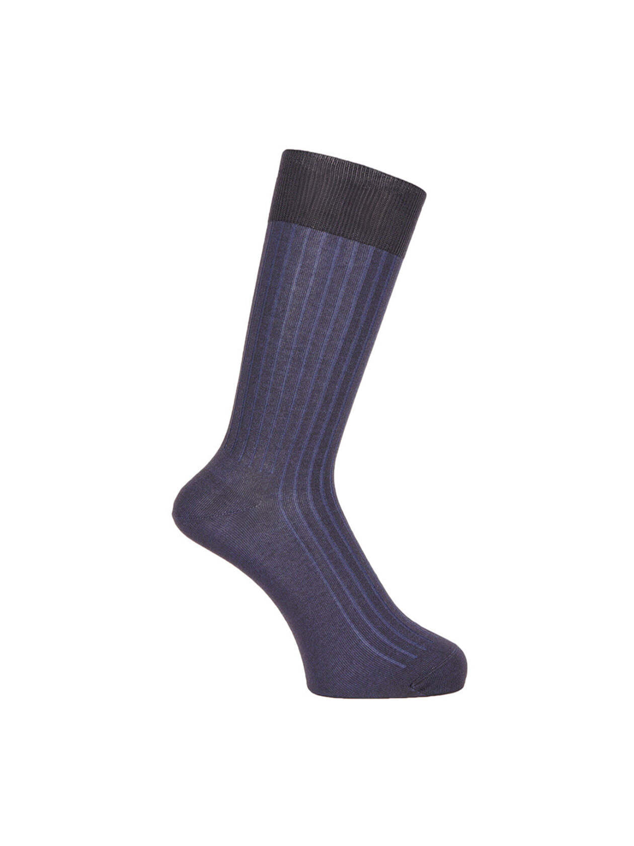 リブの凹凸部で色が違うシャドーリブソックス。光沢のあるガスシルケット糸を使用しているので上品な見た目の商品です。