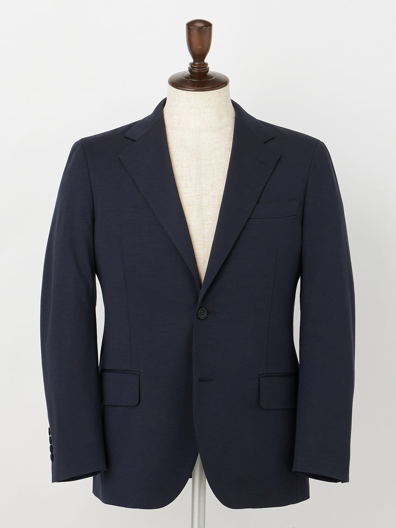 【一部店舗限定商品】テーラード工場で作る品格あるジャージーセットアップの春夏提案。 素材は国内尾州オリジナル生地でウールとシルクの良さを最大限に引き出すために糸を交編。毛羽立ちを軽減させる防縮ウールと21Dの絹糸を贅沢に4本使用。シルクにより、上質な柔らかさと光沢感を感じられ、合繊素材のジャージーとは差別化できる一画上のセットアップ。ダークネイビーベースの単品としても使いやすい1着。