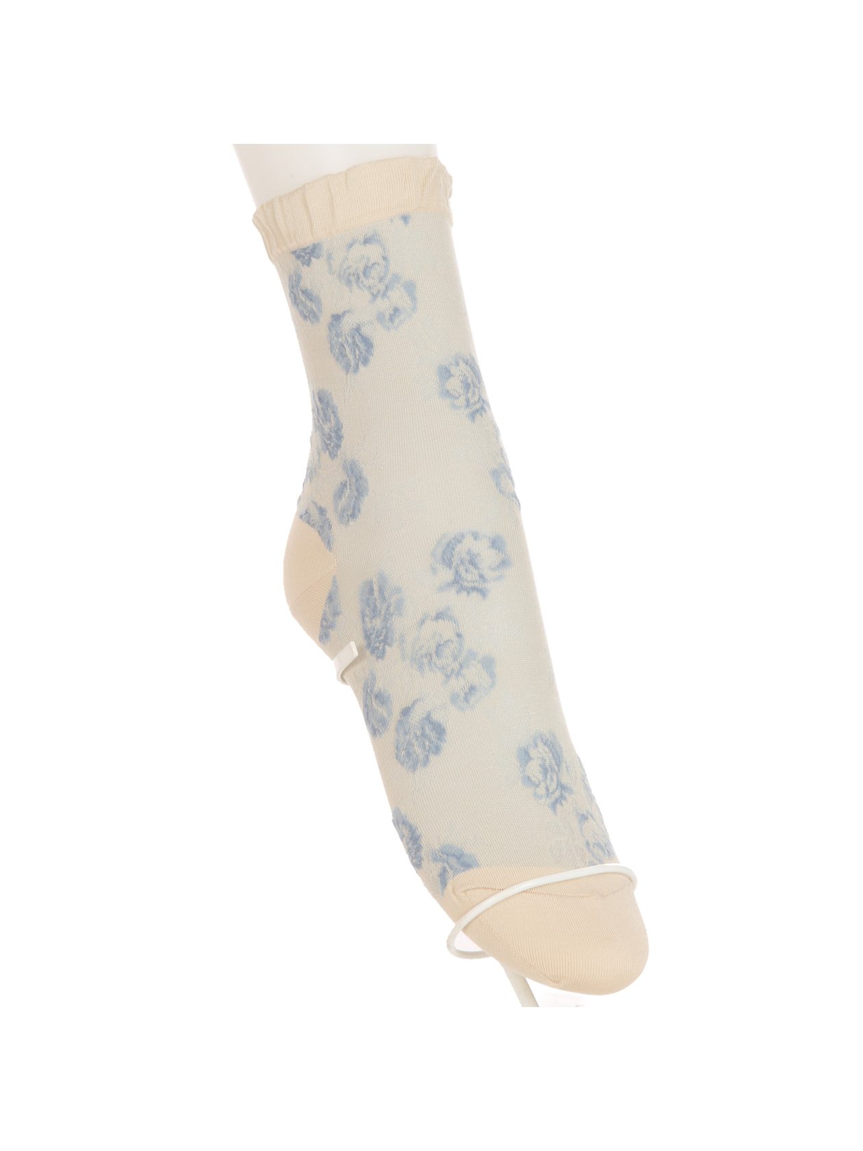イングリッシュローズ柄、ソフト口ゴム、足底ロゴ入り、ショートクルー丈