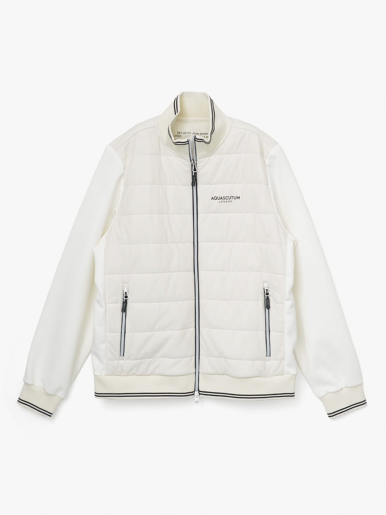 表地裏地ともに機能素材を使用した中綿パデットブルゾン。