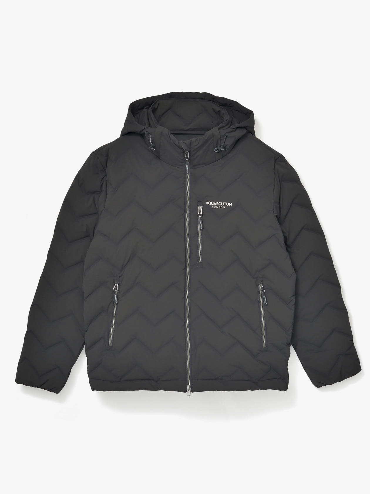 ストレッチ性のあるポリエステル素材を使用したダウンジャケット。