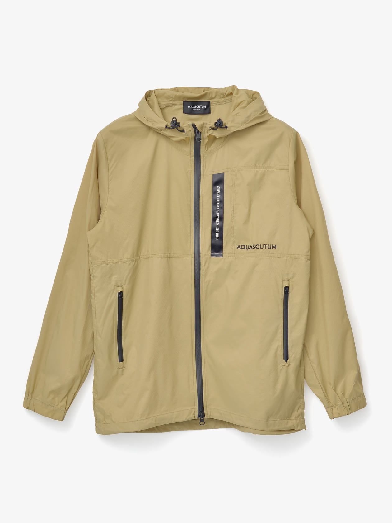 リップストップナイロン生地を使用したレインパーカー。