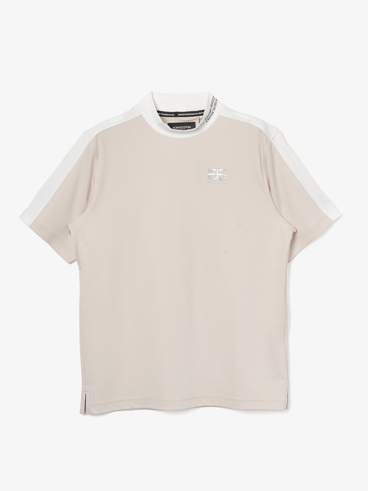 襟、肩がバイカラー仕様のモックネック。