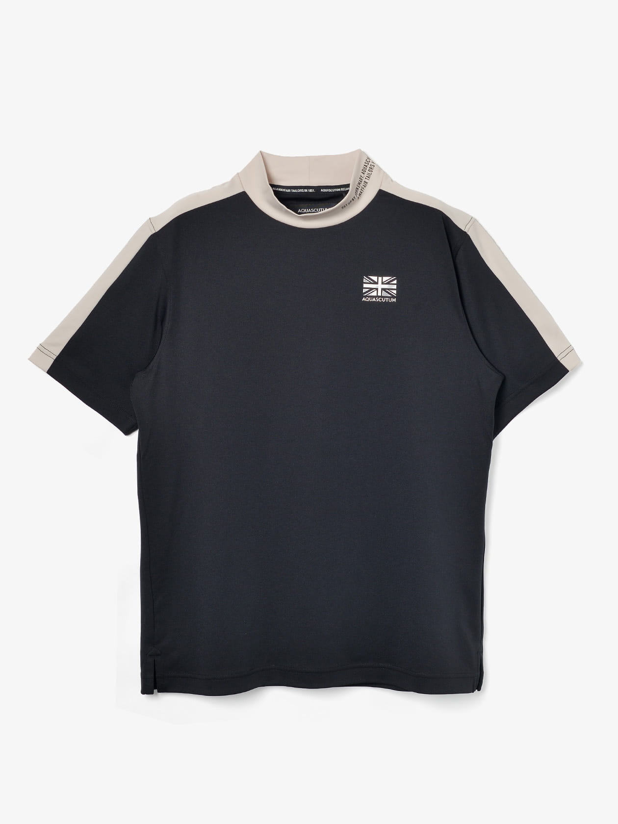 襟、肩がバイカラー仕様のモックネック。