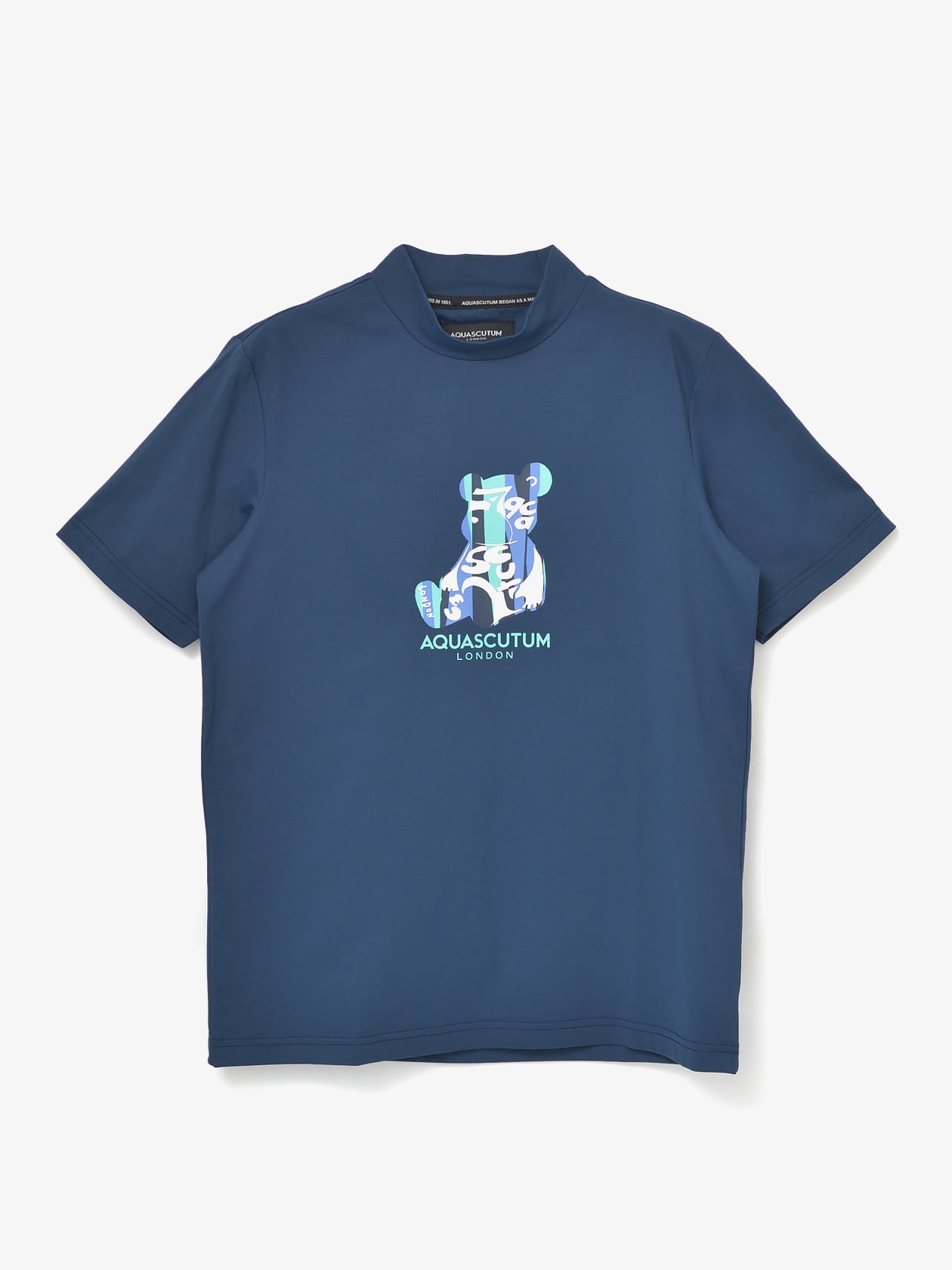 今シーズンのテーマカラーであるパープル/ターコイズを配したAQベアのプリントTシャツ。