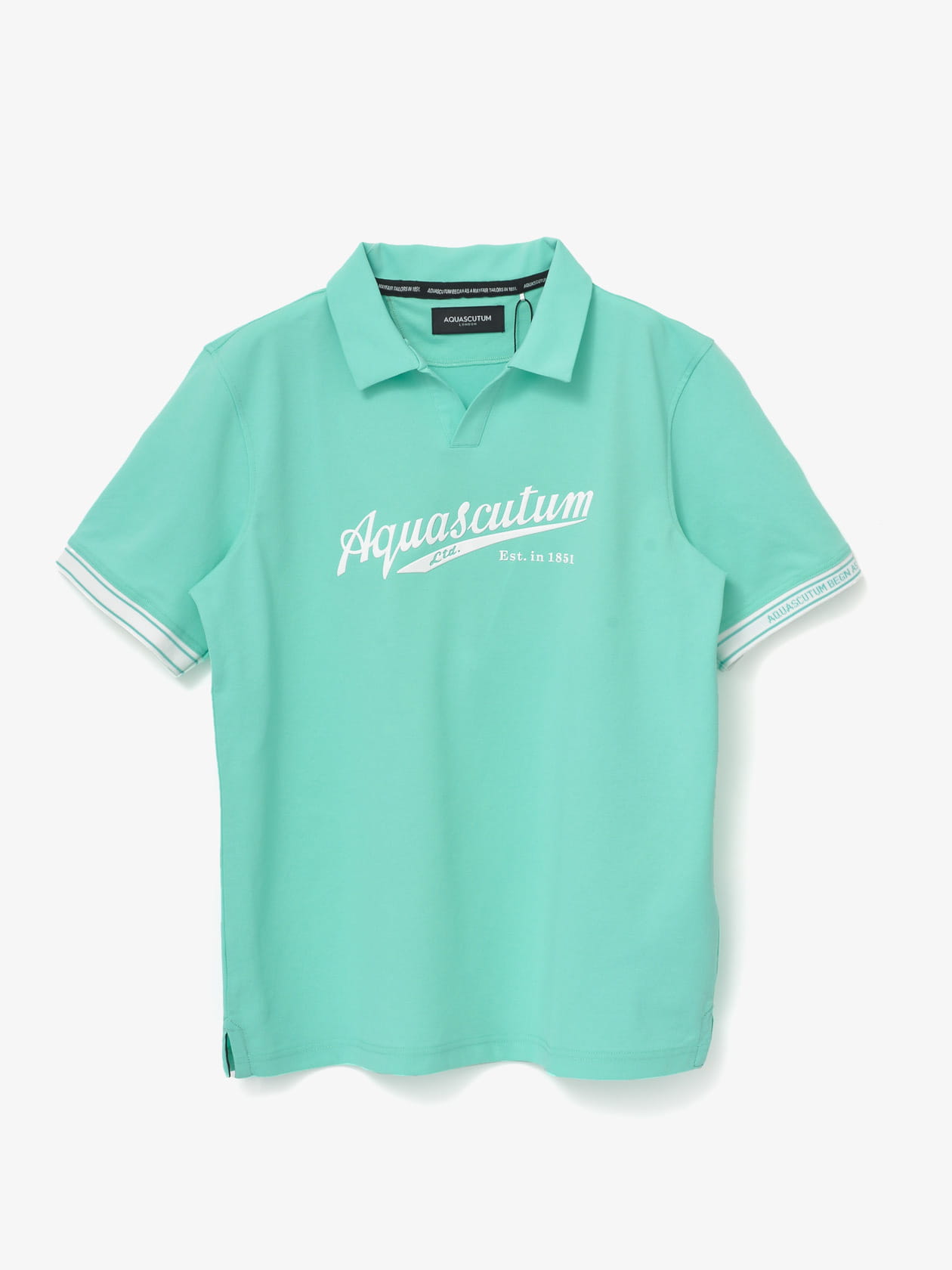ビンテージロゴを胸にプリントしたスキッパーポロシャツ。
