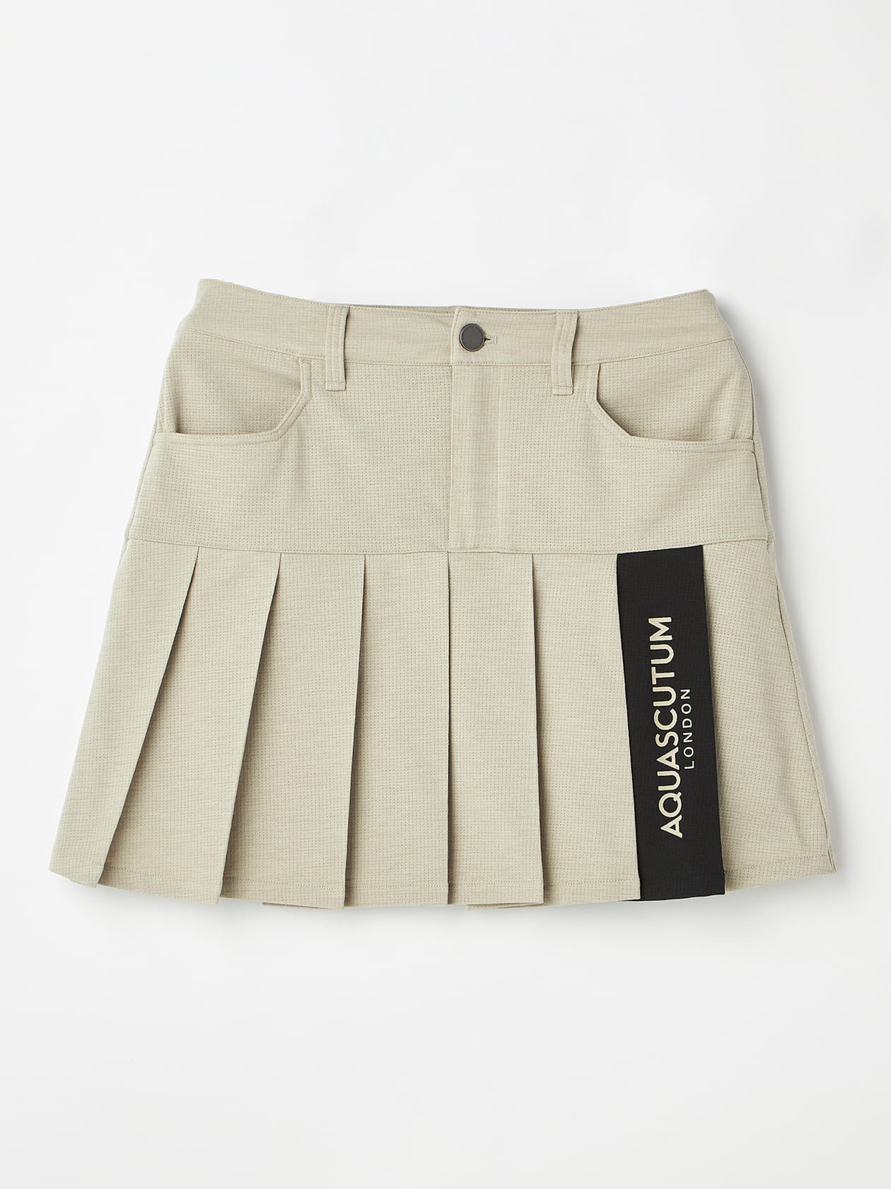 プリーツの一部にロゴプリントしたプリーツスカート。
