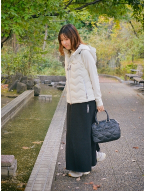 ストレッチ性のあるポリエステル素材を使用したダウンベスト。