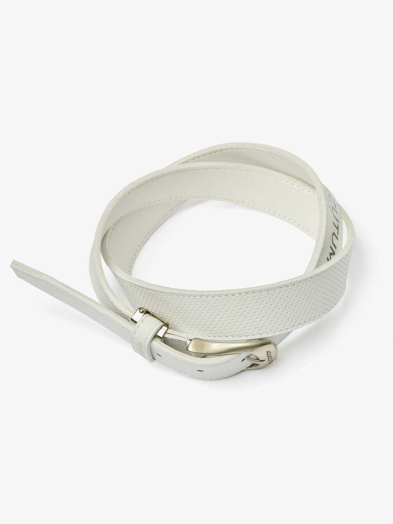 型押しレザーとロゴプリントのベルト。裏に合成皮革を使用し、汗対策をしたスポーツ仕様。