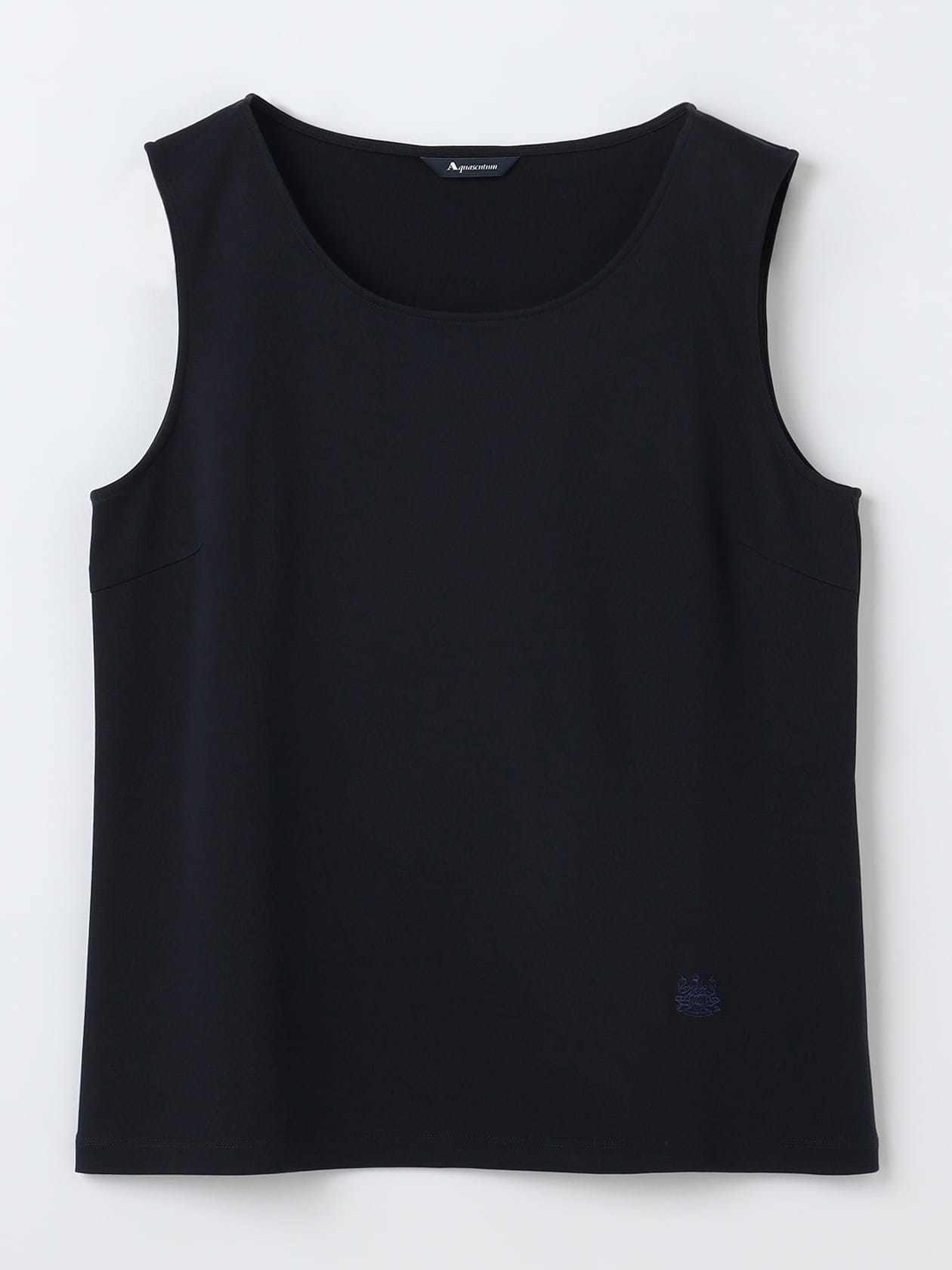 左裾へAquascutumのクレスト刺繍を施したタンクトップ。