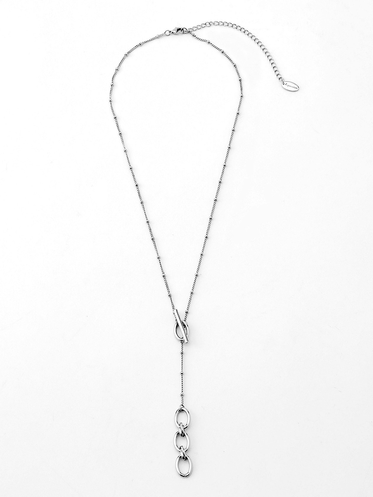 華奢なチェーンに大きめリングを組み合わせたメリハリのあるデザインです。