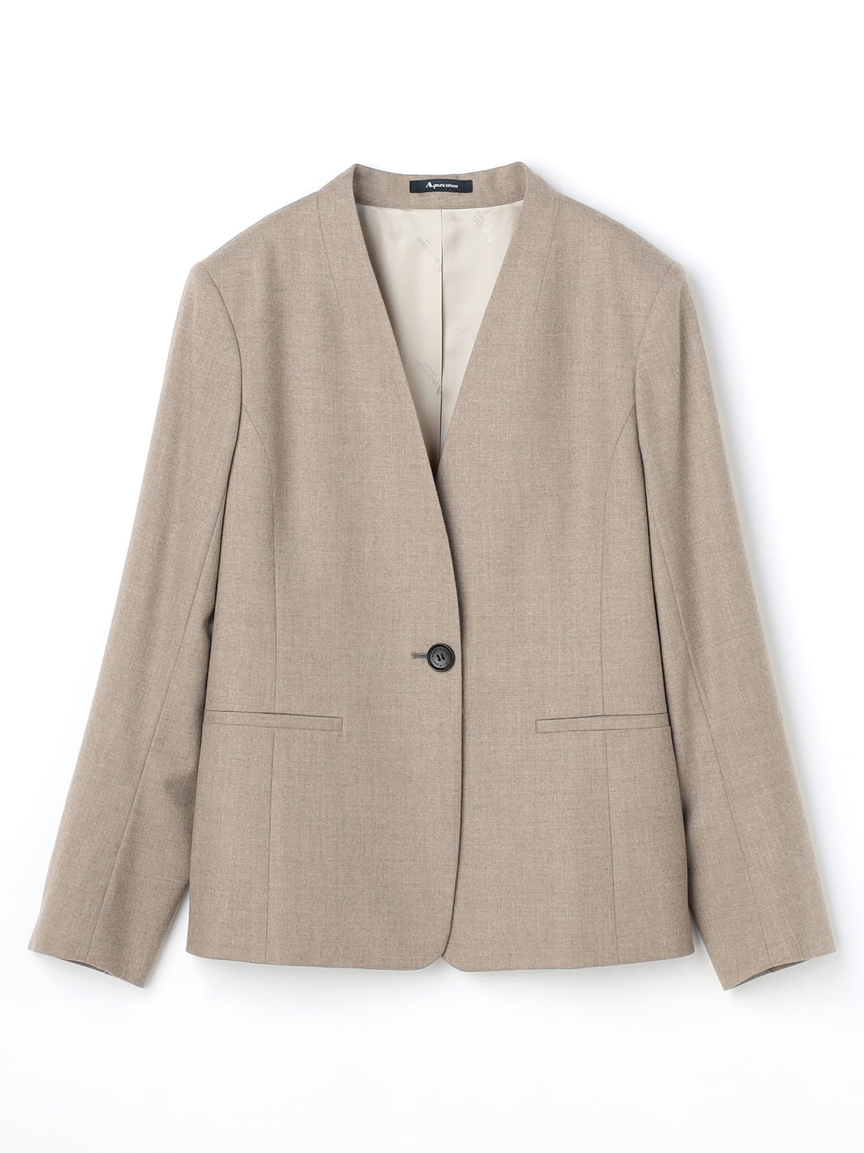 ラグジュアリーなインポート素材のカシミヤでお作りしたノーカラージャケット。