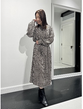 プリントは、正方形の中に長方形を規則正しく配置した、正統派な幾何学柄。