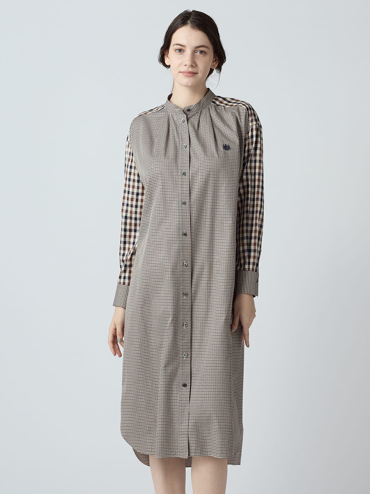 サイズの異なるクラブチェック素材をミックスしたプレイフルなシャツドレス。