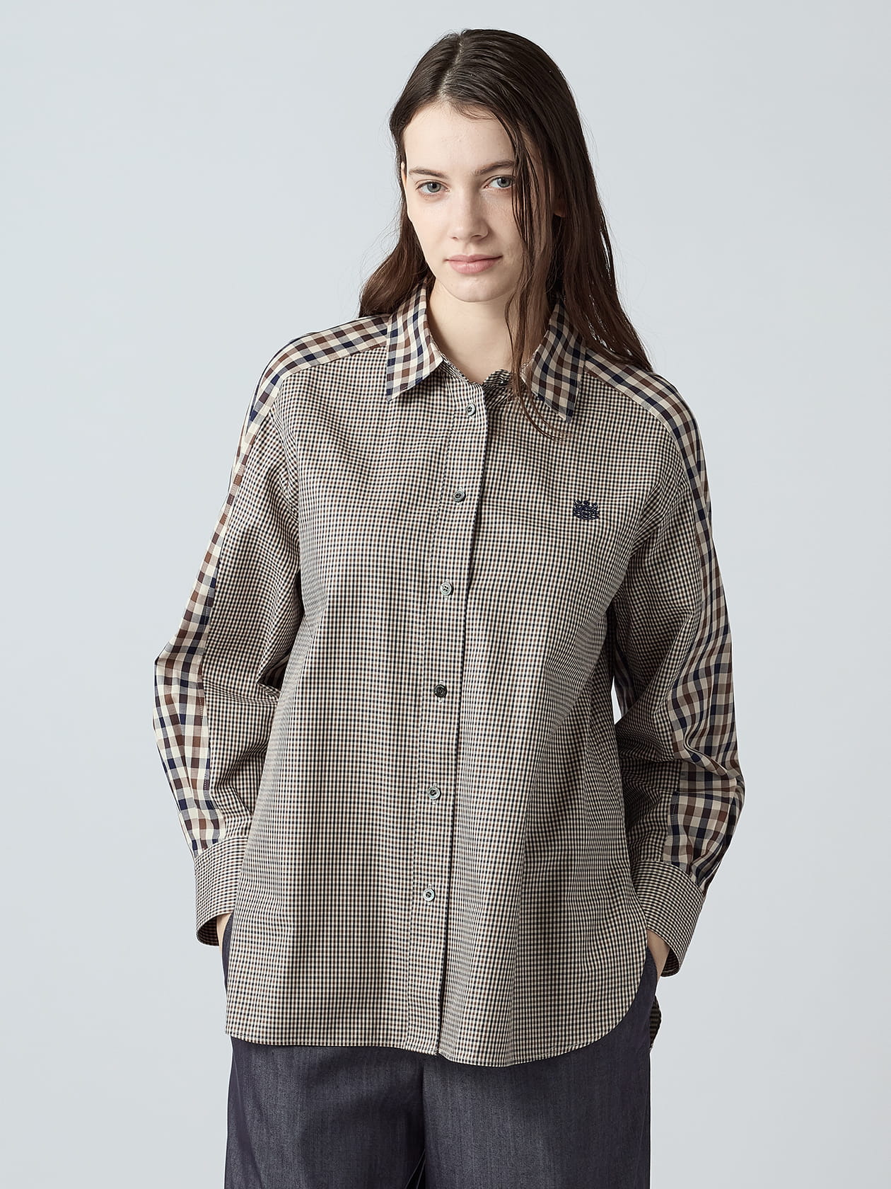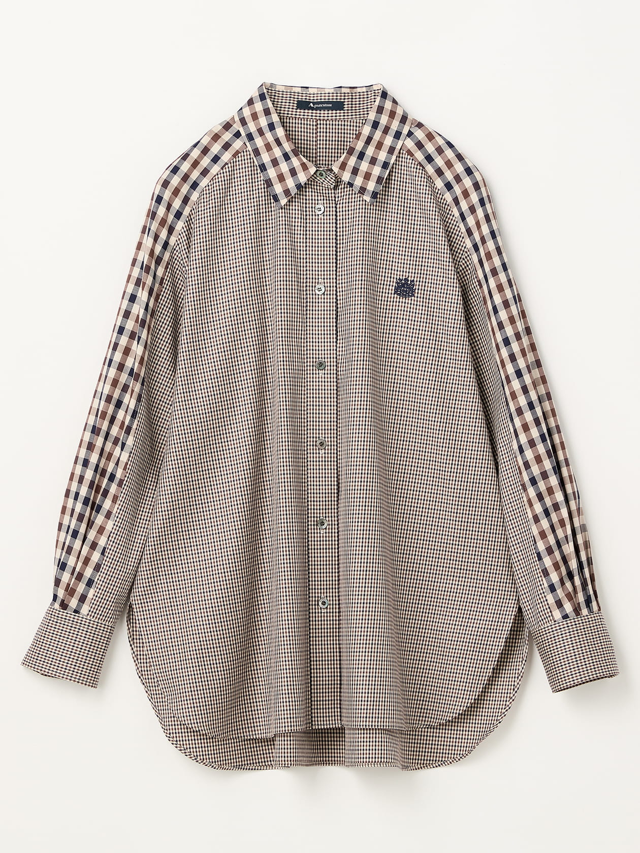 サイズの異なるクラブチェック素材をミックスしたプレイフルなオーバーシャツ。