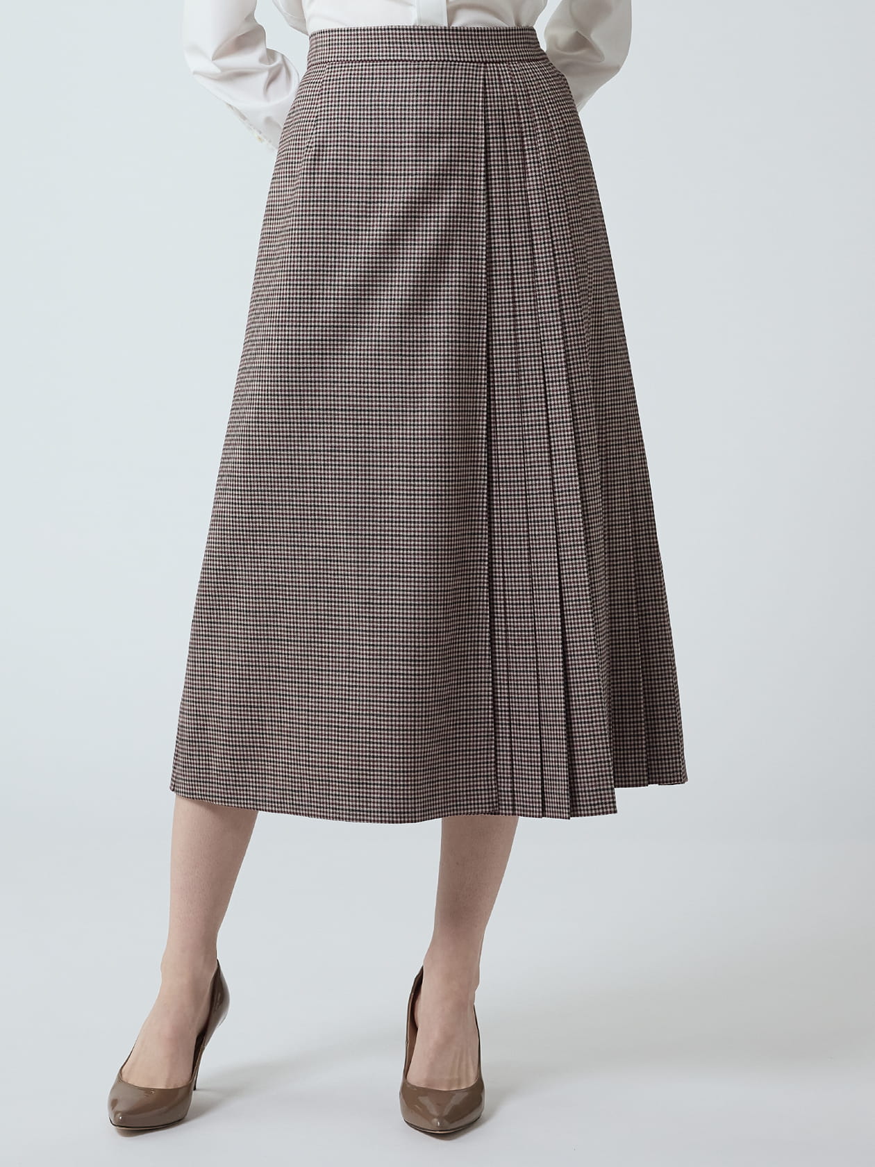 サイドに施したプリーツや長めのレングスで、新しいスーツスタイルを叶えてくれるスカート。