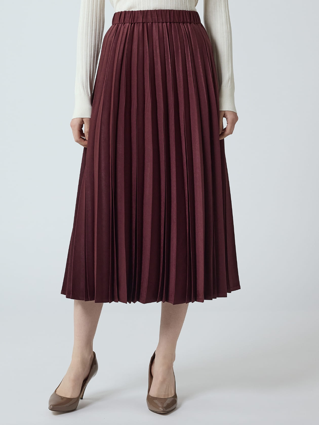 シーズンライクなスエード調素材で仕立てたプリーツスカート。