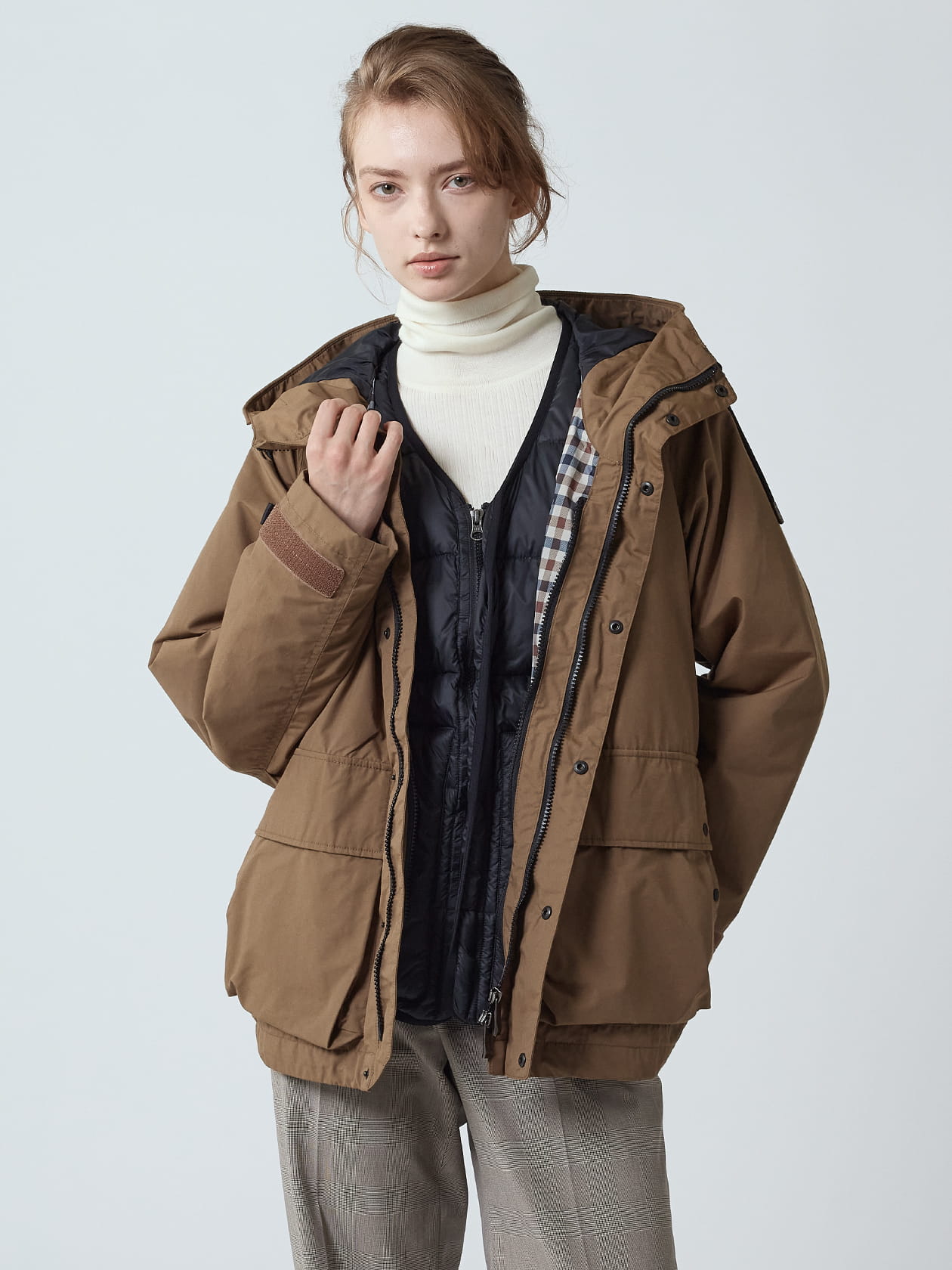 ゆったりとしたオーバーサイズでお作りしており、別売りのライトダウンをドッキングすれば真冬でもご着用頂ける保温性に優れたアウターに。