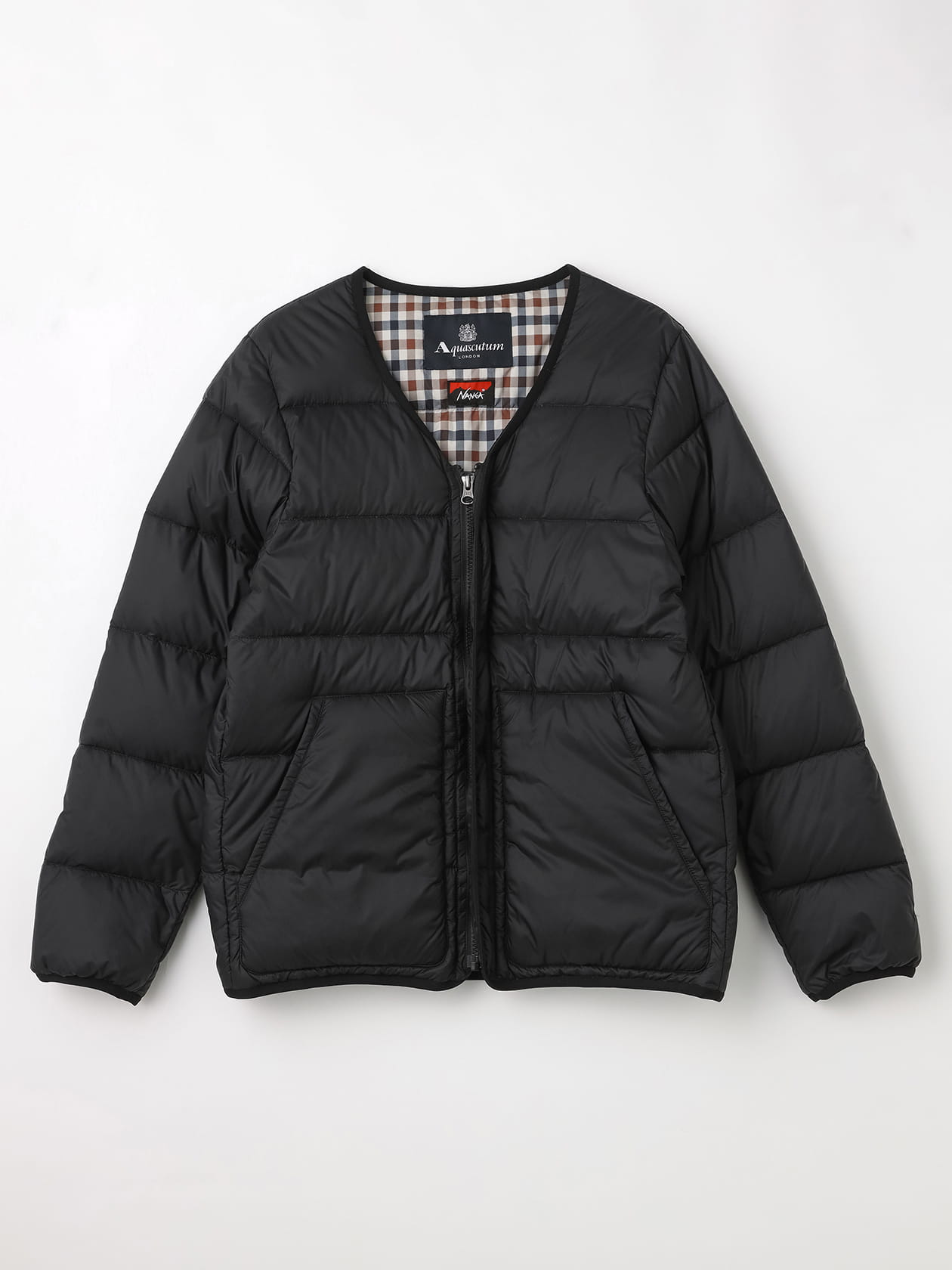 裏地にはクラブチェック、左袖にはNANGA刺繍をあしらい特別感を演出。
