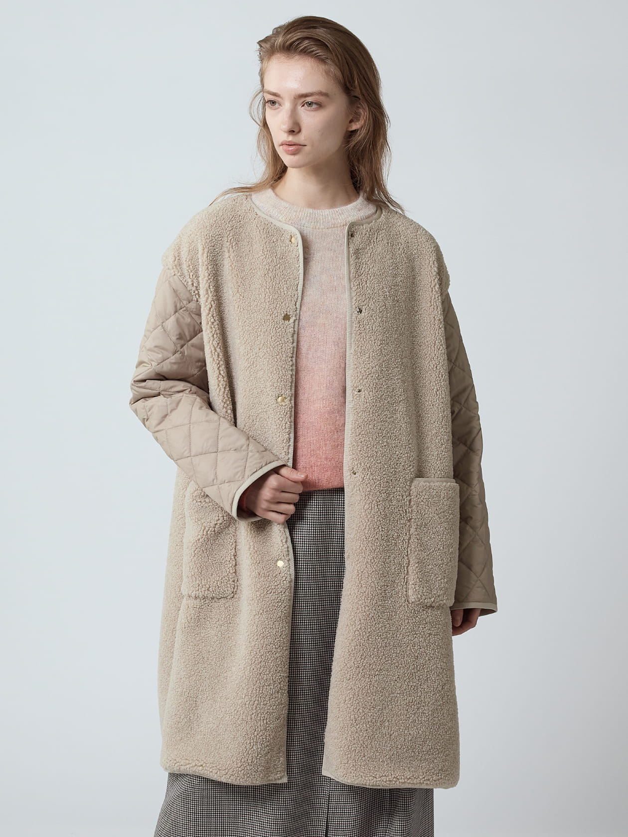 ふんわりとしたボア素材が愛らしい、ニューデザインのキルティングコート。
