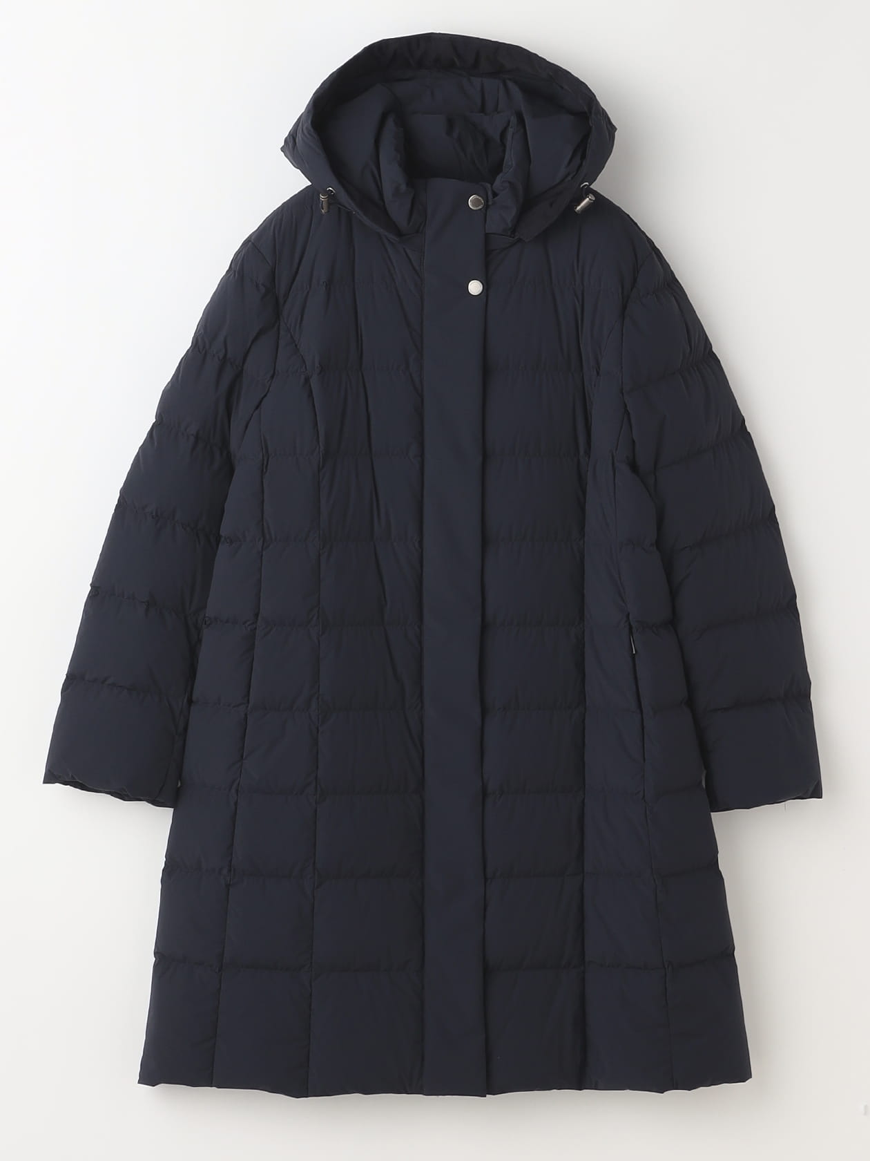 取り外し可能なフードで、2WAYの着こなしを楽しめるダウンコート。