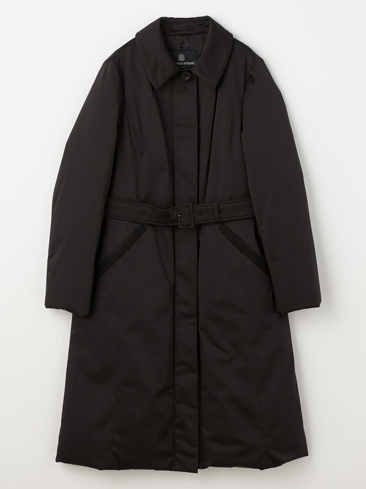 Aquascutumらしいステンカラーコートのデザインで仕立てたステッチレスダウン。