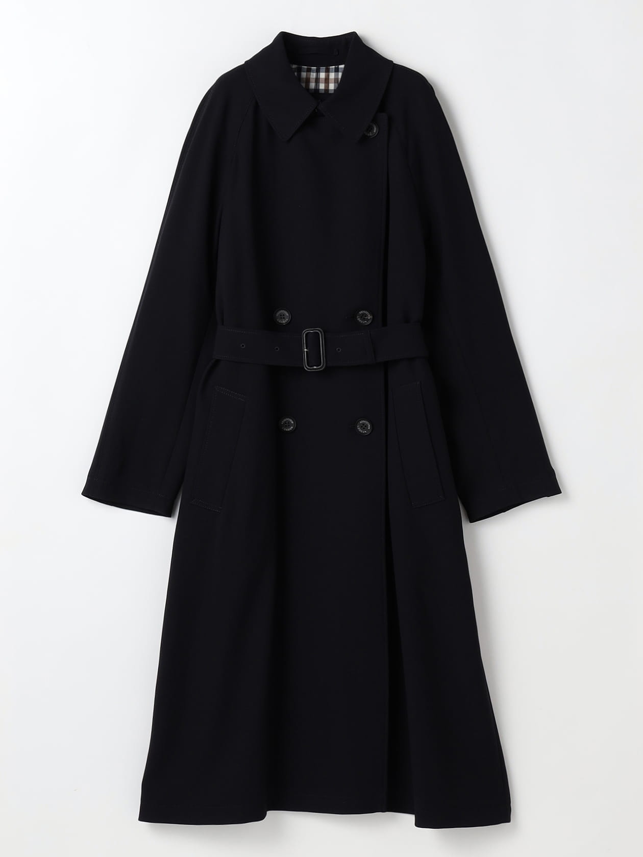 背ヨークはステッチで留めない仕様で、ウエストベルトをぎゅっと締めるとフィット&フレアのシルエットが際立ち、コートドレスのように女性らしく着こなせます。