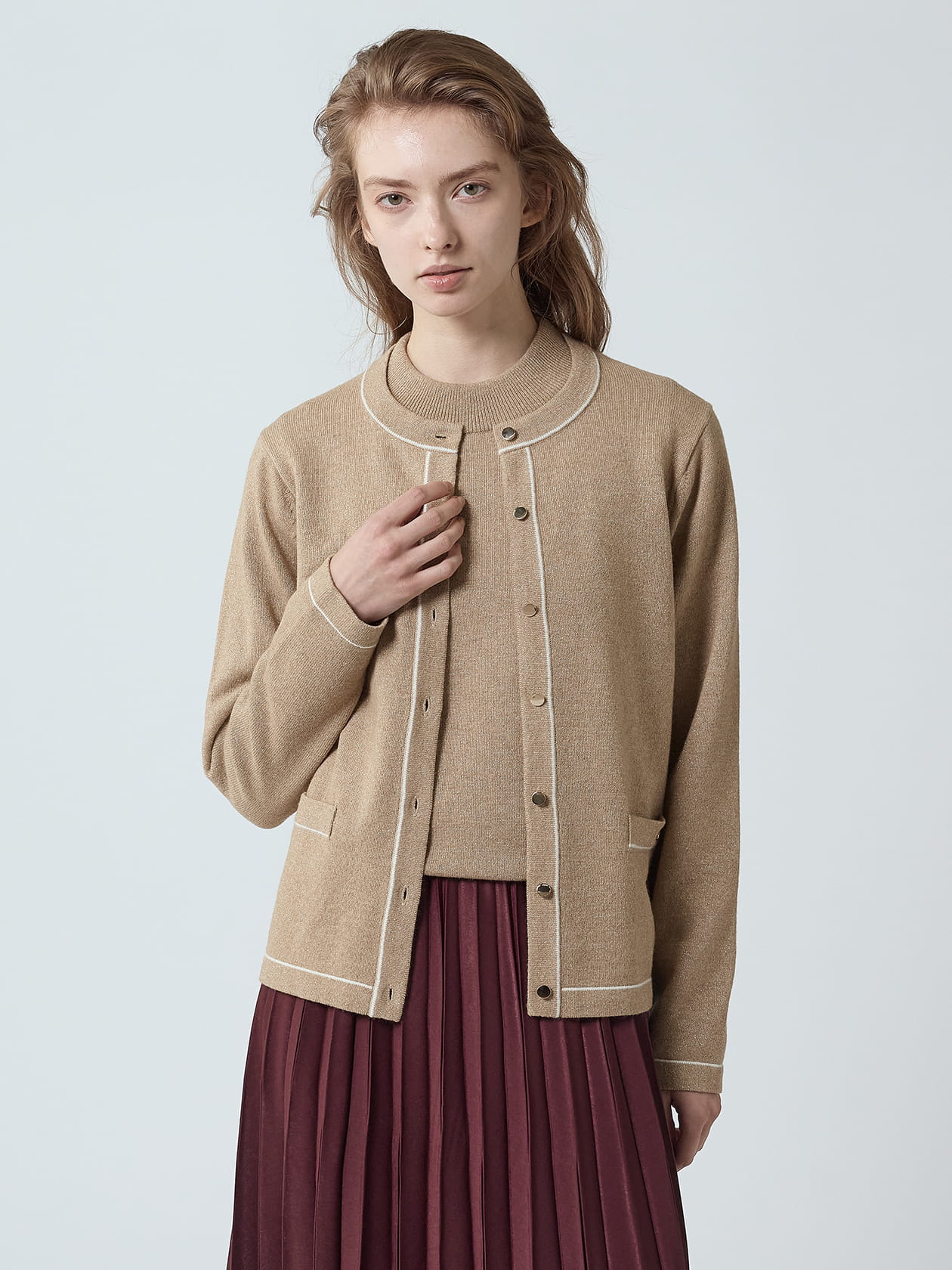 ラメ入りの編地と配色カラーのコンビネーションが、クラシカルで華やかな雰囲気を演出します。
